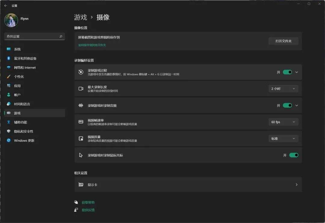 Windows 上 Xbox Game Bar 的设置界面