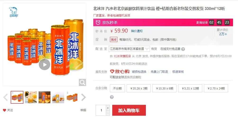 同样是在官方旗舰店,芬达只要2.45元一听,北冰洋却卖4.9元一听。