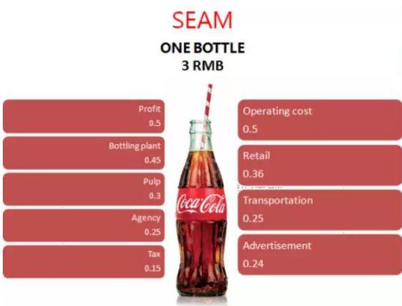 相关数据显示,一瓶可口可乐卖3元,利润只有5毛钱。