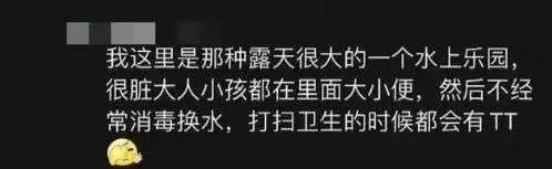 而从几乎所有泳池都很少换水这一点来看,水上乐园里的水,也很难保证,甚至消毒粉都可能撒的不够。