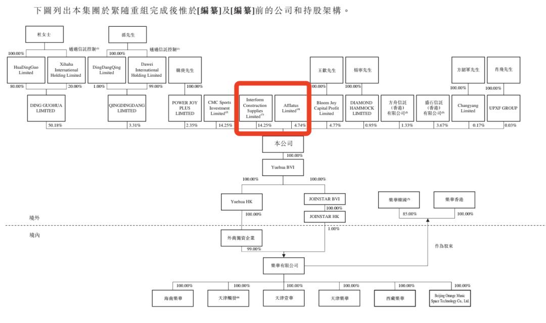 招股书显示,IPO前,乐华娱乐执行董事、董事长兼首席执行官杜华持股为50.18%。东阳阿里巴巴影业通过Interform Construction持股为14.25%,量子跃动通过Afflatus持股为4.74%,量子跃动背后的控股股东正是字节跳动。