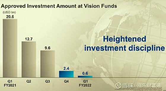 首先,在投资策略上,愿景基金早已进入了“防御模式”,其核准投资金额逐年减少。由2021年的206亿美元,狂降97%,至今年第一财季的6亿美元。这一数字,甚至仅仅是过往单一季度的零头。“我们目前正在严控新投资。”