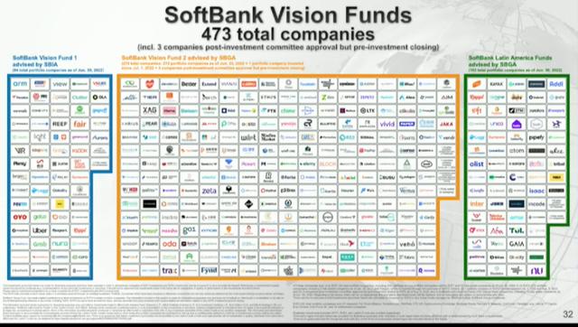 目前,两只愿景基金加上软银拉丁美洲基金共计投资了473家公司。其中,愿景一期基金持有80个投资项目,愿景二期基金则持有投资组合269家。