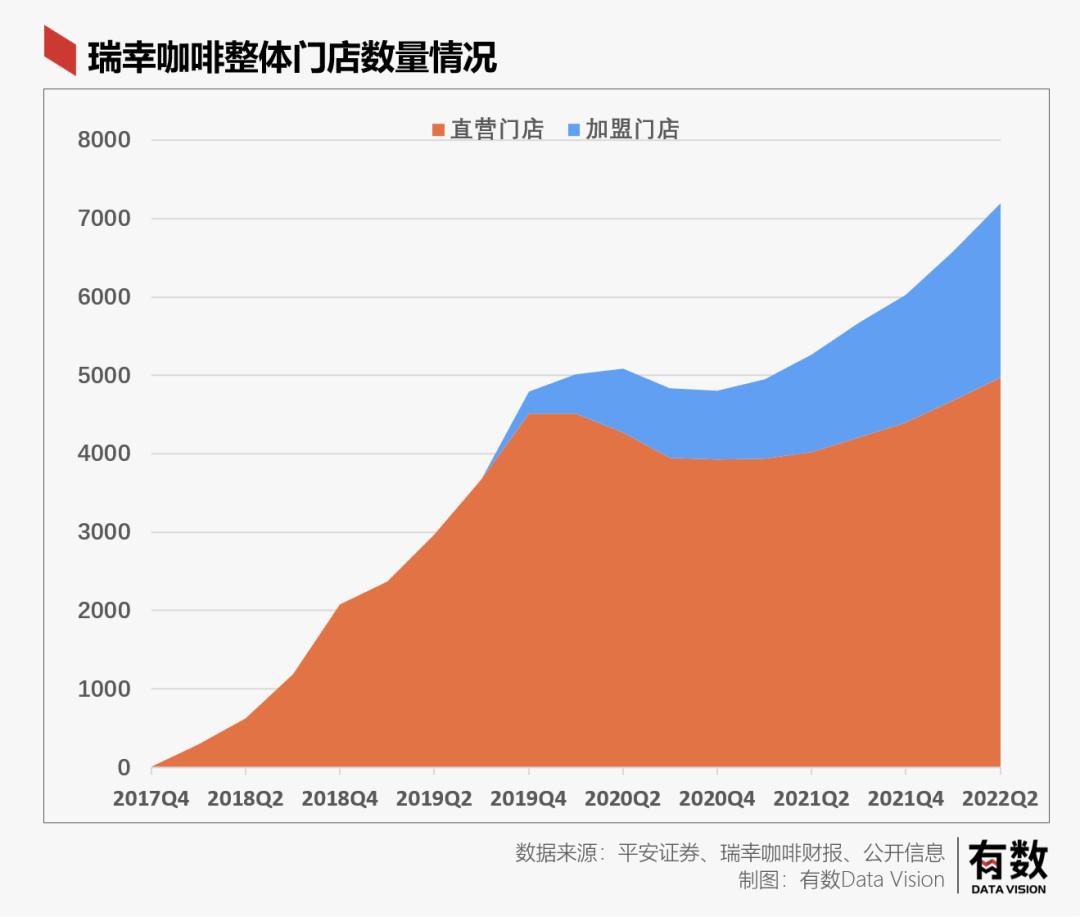 其次,瑞幸的直营门店的净增加数也在加速增长。