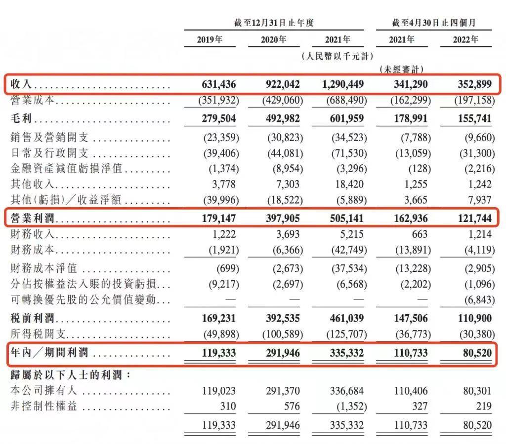 2019年、2020年、2021年及截至4月30日止2022年前四个月,乐华娱乐集团收入分别约为6.31亿人民币、9.22亿人民币、12.9亿人民币、3.53亿人民币;同期,公司利润分别约为1.19亿人民币、2.92亿人民币、3.35亿人民币及8052万人民币。