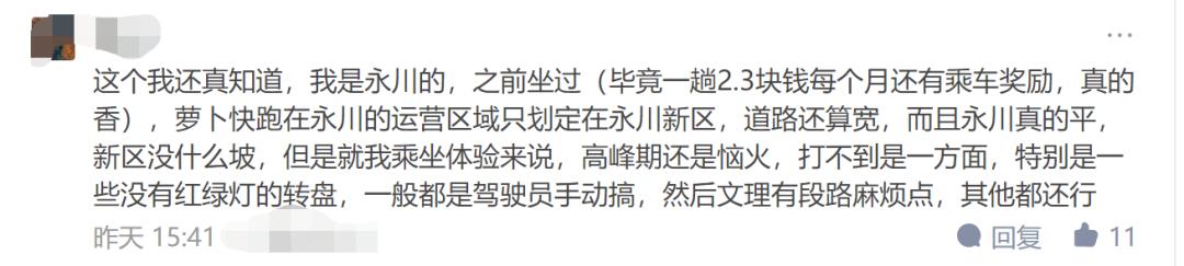针对这次将自动驾驶出租车在重庆投放一事,也有网友表示,永川区不比主城,道路还算宽,而且路很平,基本没有什么坡,但是在高峰期前后还是很恼火。