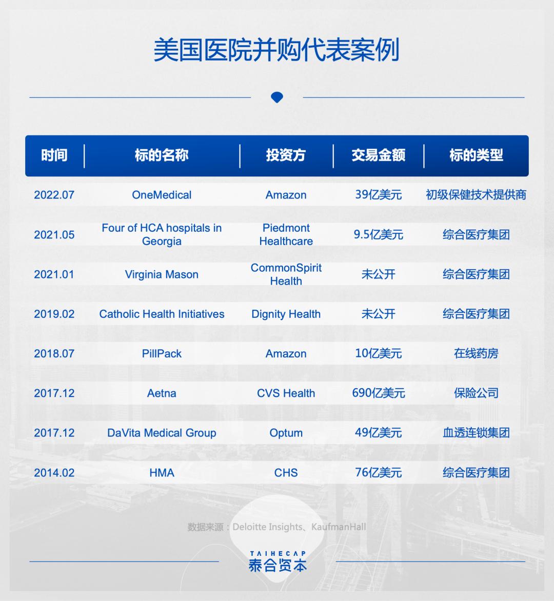 最近的例子出现在7月底,亚马逊以39亿美金收购医疗保健机构OneMedical的消息震动市场,这也是亚马逊史上最大的医疗收购。