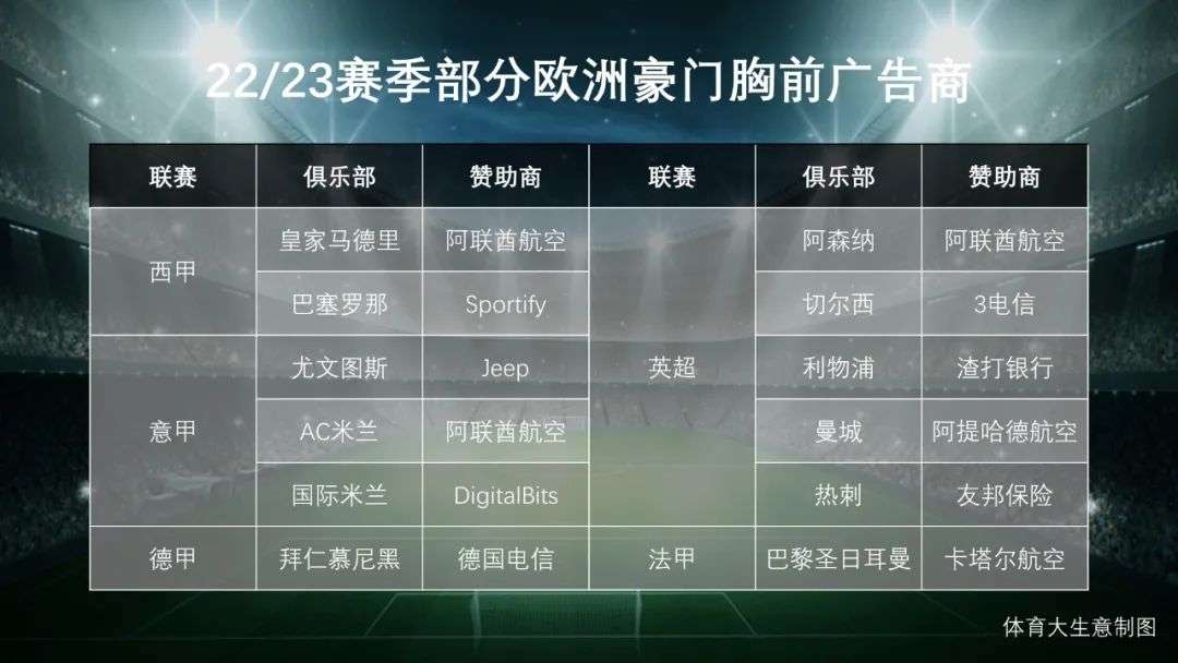 部分豪门胸前广告赞助情况
