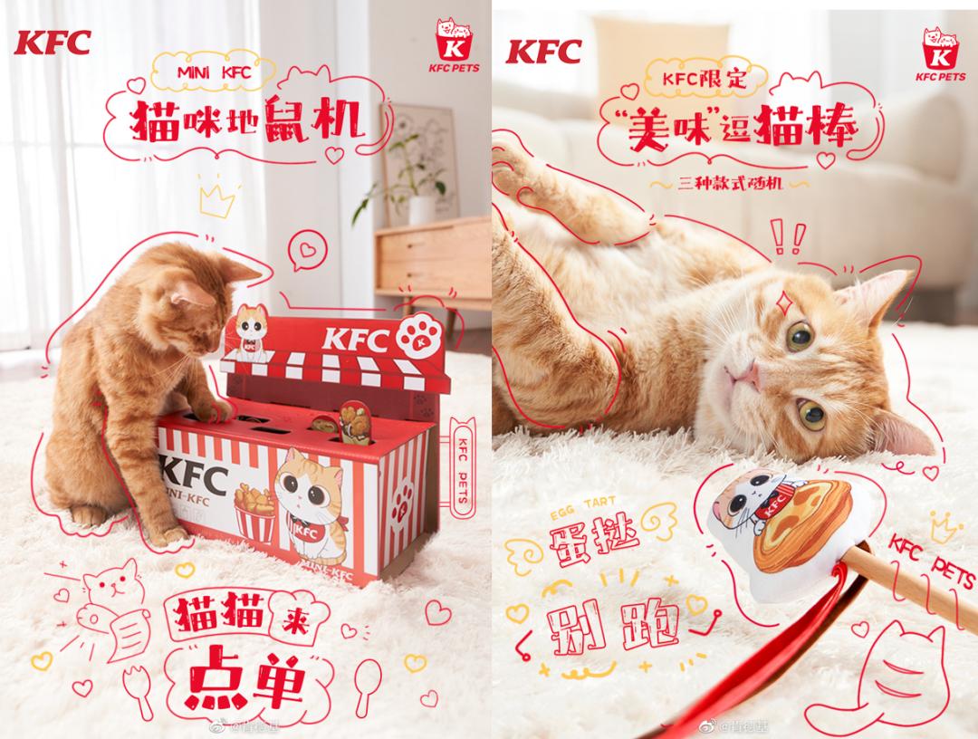 然而,两个品牌的联名产品并不足以满足肯德基“小猫咪的住、穿、玩、乐,通通安排!”的豪言壮语,毕竟铲屎官们总会觉得自家毛孩子该买新玩具了。7月,肯德基还全国范围内推出了含有“猫咪地鼠机”的套餐以及美味逗猫棒, 同时吸引了想给猫玩的人和想跟猫玩的人,为亲崽快乐相伴添了一份力。