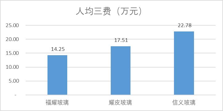 前文中详叙曹德旺对于成本管控的认真程度,曹德旺本身学习过管理会计,清楚地明白一个会计学道理“多卖1块钱不意味着真的赚了1块钱,而多省1块钱却是实打实的利润”。很明显随着企业规模的扩大,成本精益管理的难度会越来越大。但是我们对比福耀的人均三费成本发现,福耀的精细化管理不但传承下来,而且早已成为行业的标杆。