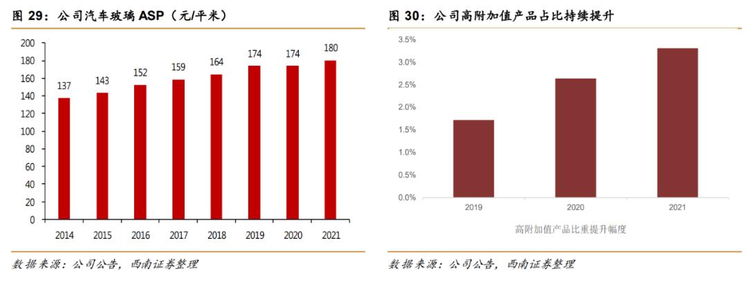 (图:福耀ASP及高附加值产品占比统计,来源:西南证券)