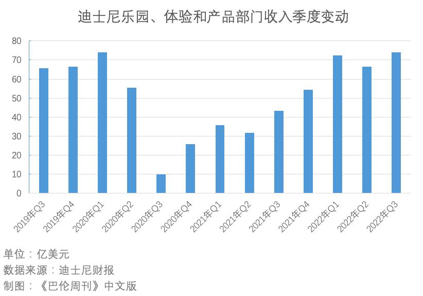 2022年第三财季,迪士尼乐园、体验和产品部门的季度营收创下了疫情后的最好表现。