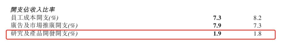 而李宁在研发上的投入并不多,财报数据显示,其2022年上半年研发占收入比仅为1.9%,相较于经销开支占收入比27%,二者完全不在一个数量等级上。