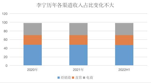 尽管在不断强调线上直播、线下整合,事实上李宁的渠道组合近年来并没有太大变化。
