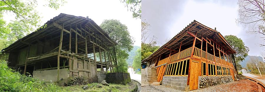 父亲的旧房和改造初期的公益图书馆对比(受访者供图)