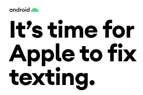 这两天谷歌突然发起了一项策划,要求苹果彻底解决短消息的问题。 在 Android 官网新开设的一个网页上,谷歌把目前跨移动操作系统用户之间发消息存在的种种问题,直接归咎到了苹果的头上: