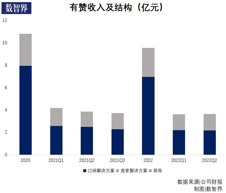 现在,有赞的收入主要来源于三个部分:订阅解决方案收入,商家解决方案收入及其他收入。