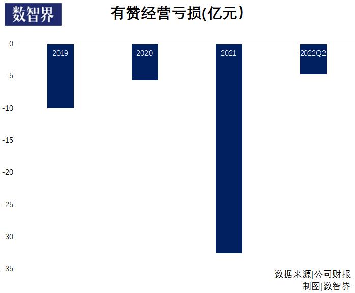 2022上半年,有赞经营利润亏损4.74亿元,亏损同比扩大5.5%。而2021年,包括商誉减值在内,有赞经营亏了32.53亿元。