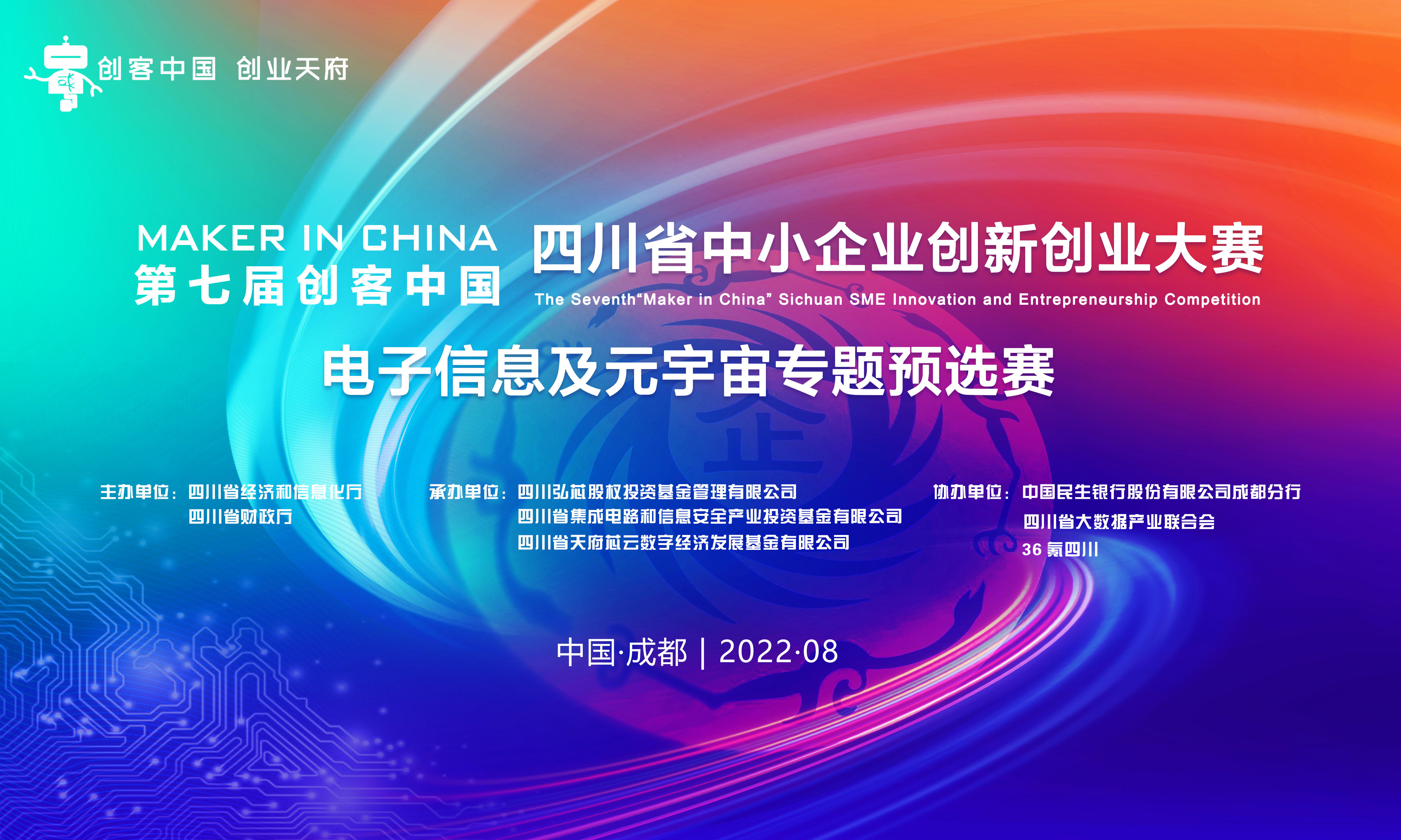 8月12日,第七届“创客中国”四川省中小企业创新创业大赛“电子信息及元宇宙”专题预选赛在成都市武侯区四川大学国家双创示范基地多功能报告厅成功举行。本场大赛由工业和信息化部、财政部指导,四川省经济和信息化厅、四川省财政厅主办,四川弘芯股权投资基金管理有限公司、四川省集成电路和信息安全产业投资基金有限公司和四川省天府芯云数字经济发展基金有限公司承办,36氪四川、中国民生银行股份有限公司成都分行和四川省大数据产业联合会协办。
