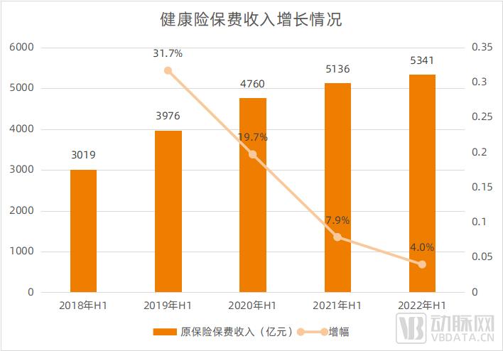 据银保监会统计数据显示,2022年上半年,健康险保费收入5341亿元,同比增长4%,与2020年、2021年同期的19.7%、7.9%相比,增速放缓。