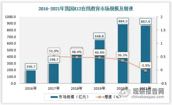 据观研报告网数据显示,随着“双减”政策落地,K12在线教育市场规模减少至867.4亿元,较上年同比下降%。K12赛道受挫,相关企业开始转型职业在线教育,在国家利好政策加持下,职业教育成为在线教育新的增长点,受到资本的热烈追捧。