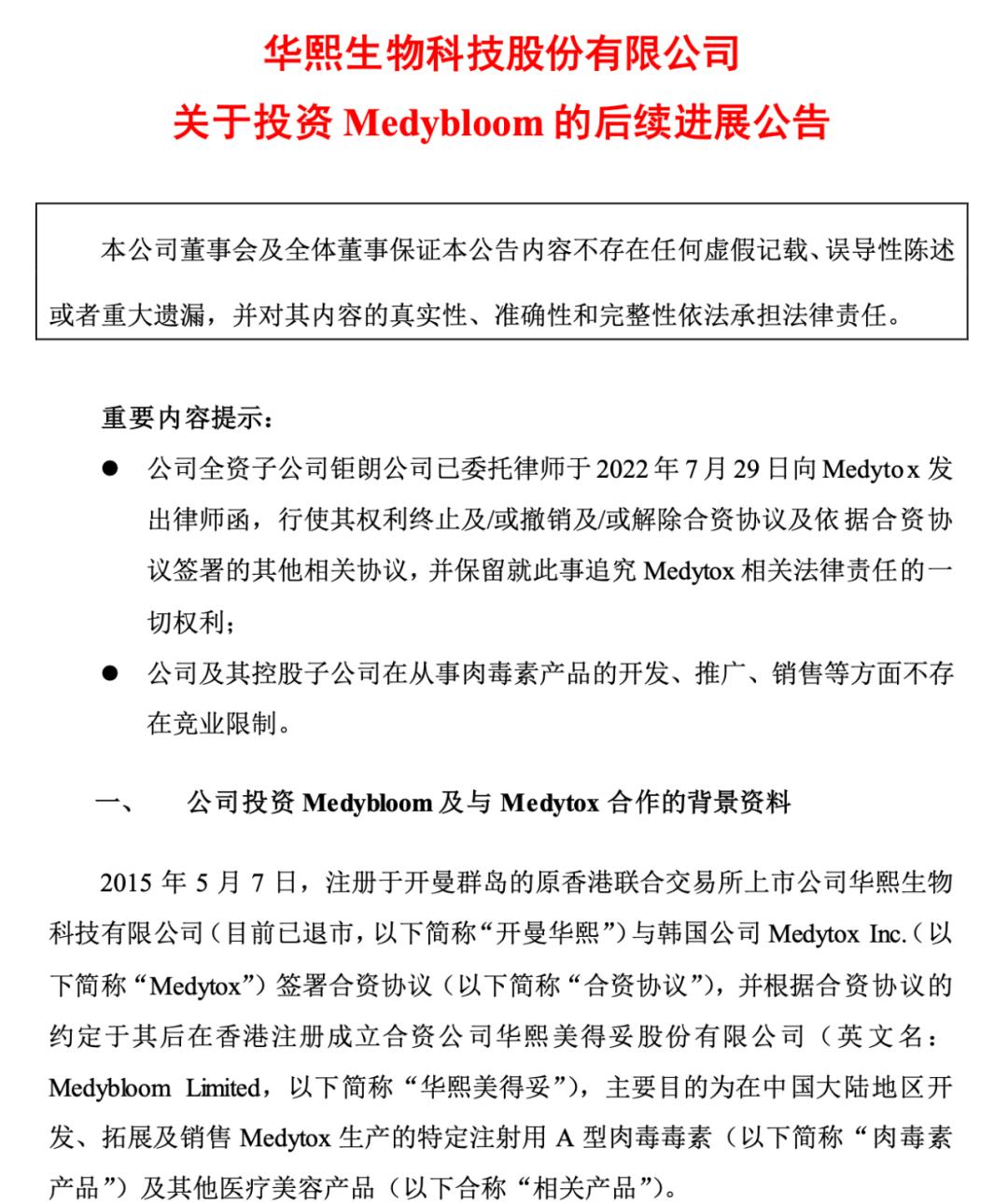 这严重的违规行为,导致华熙生物引进肉毒素产品计划名存实亡。公告显示,Medytox于中国注册的肉毒素产品自2019年11月11日起至今未完成产品注册手续,无法在中国进行销售。