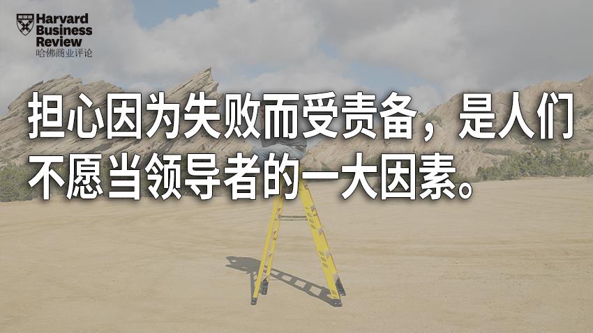 我们发现的最后一点是,许多人担心一旦成为领导者就要为团队的失败承担责任。他们担心自己会因为团队的失败而受责难,并因此失去自己渴望的晋升机会或未来的领导职位。一位参与者说,“假如我来领导工作,那么可能发生的坏结果就要由我来负责。”另一位参与者表达了相似的忧虑,“如果我们的项目进展不顺利……作为领导者的我就会受到谴责。”担心因为失败而受责备,是人们不愿当领导者的一大因素。