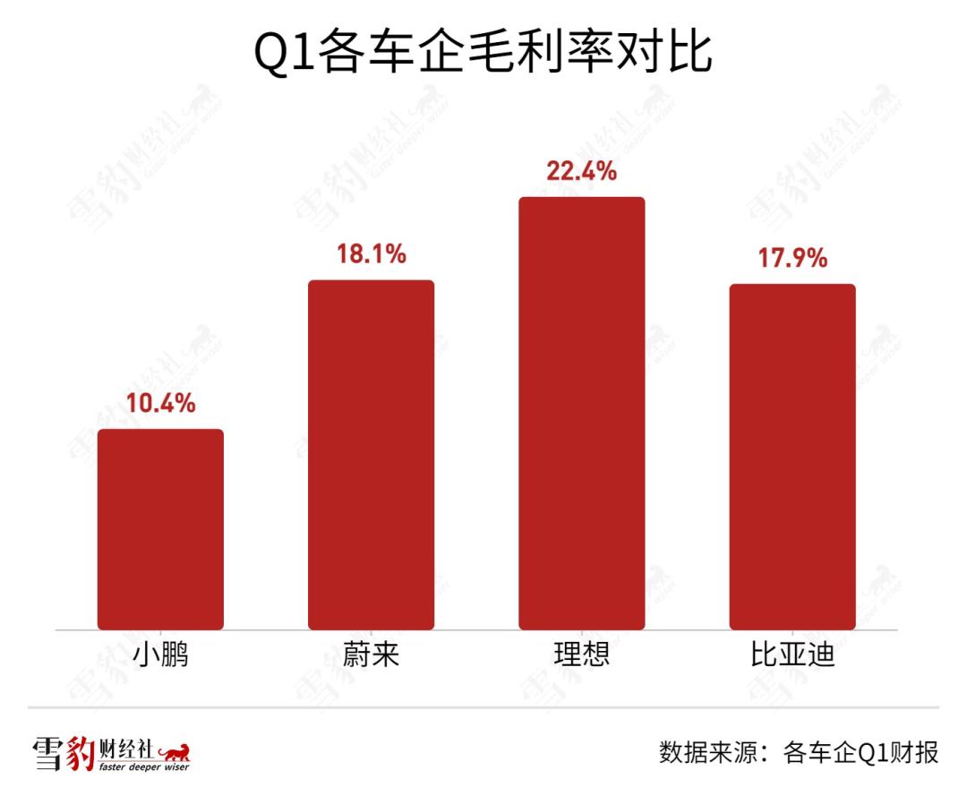 另一方面,降价还会拖累小鹏本就不高的毛利率。据2022年Q1财报,小鹏毛利率为10.4%,不及理想的22.4%和蔚来的18.1%,也低于广泛布局中低端车型的比亚迪(17.9%)。