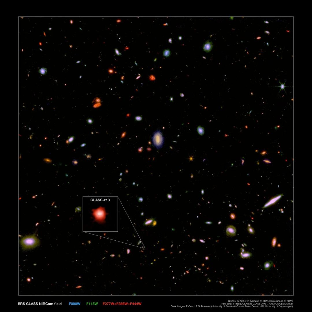 GLASS-z13,让韦布打破了哈勃最遥远天体的纪录 | Naidu et al, P. Oesch, T. Treu, GLASS-JWST, NASA/CSA/ESA/STScI
