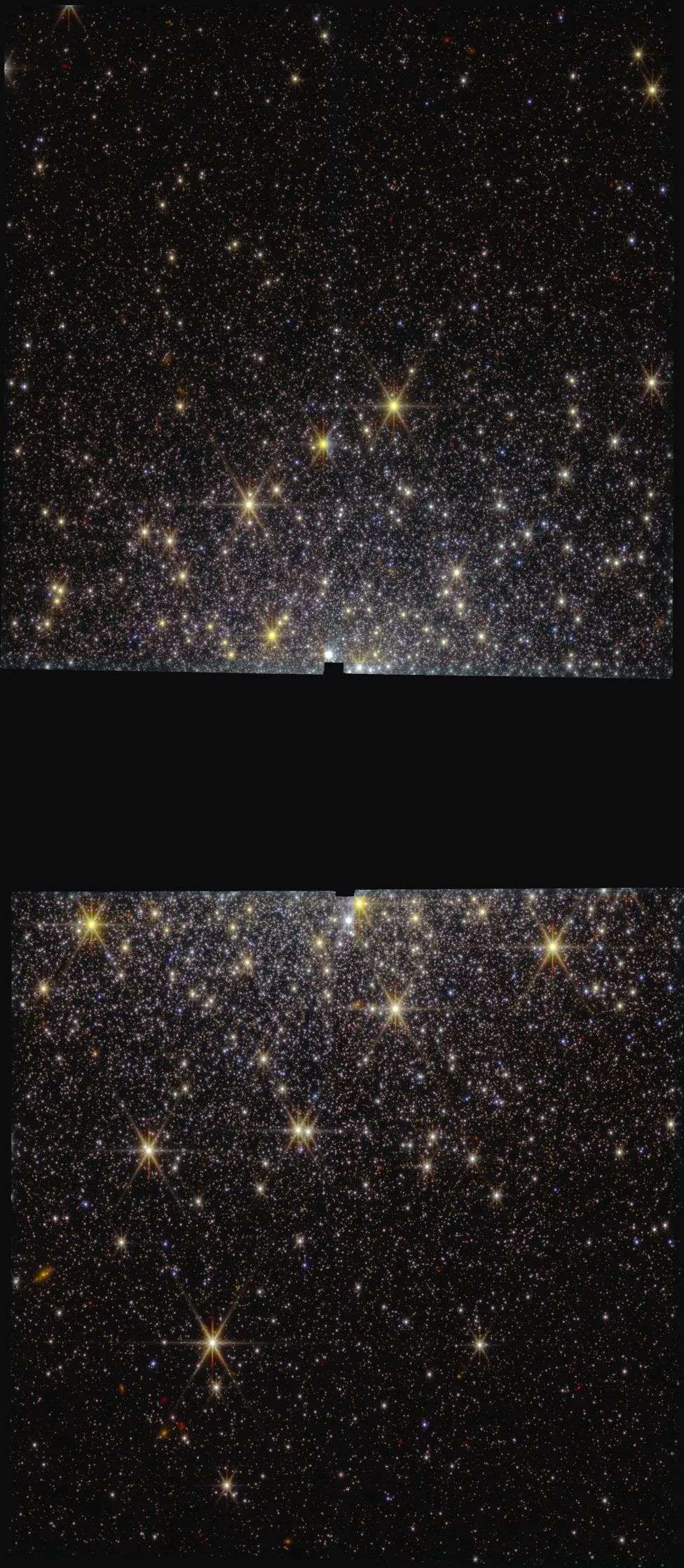 这是武仙座中距离地球2.67万光年的球状星团M92,由韦布望远镜使用多个滤镜拍摄,不过只拍了星团东西两侧的外围。