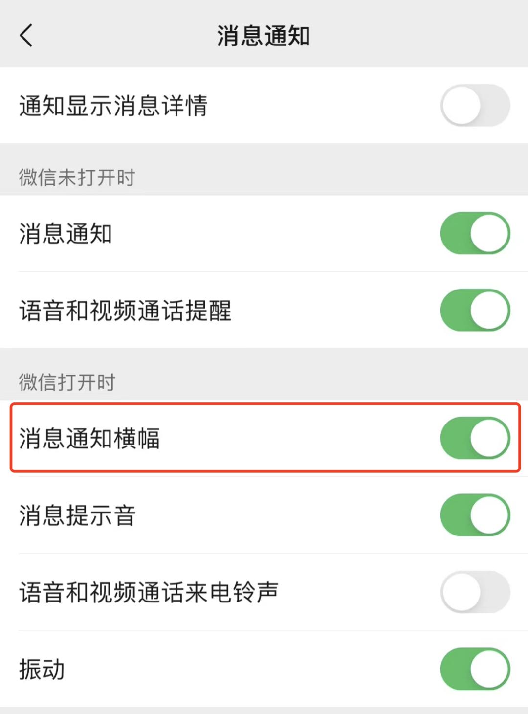 进入微信「我-设置-消息通知」选项后,打开「消息通知横幅」开关就可以开启这个功能。