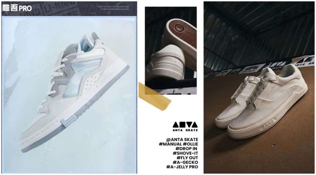 老牌运动品牌的入局,更是让滑板的商业热潮愈演愈烈。李宁从2021年开始入局并推出滑板鞋“惟吾 Pro”,2021年与美国传奇滑手Erik Ellingron合作推出了首款滑板鞋“灵腾”;今年1月,安踏宣布正式打造中国滑板生态,并请出当红流量明星、中国滑板运动推广大使王一博代言安踏滑板系列首款滑板鞋产品“骜立”。