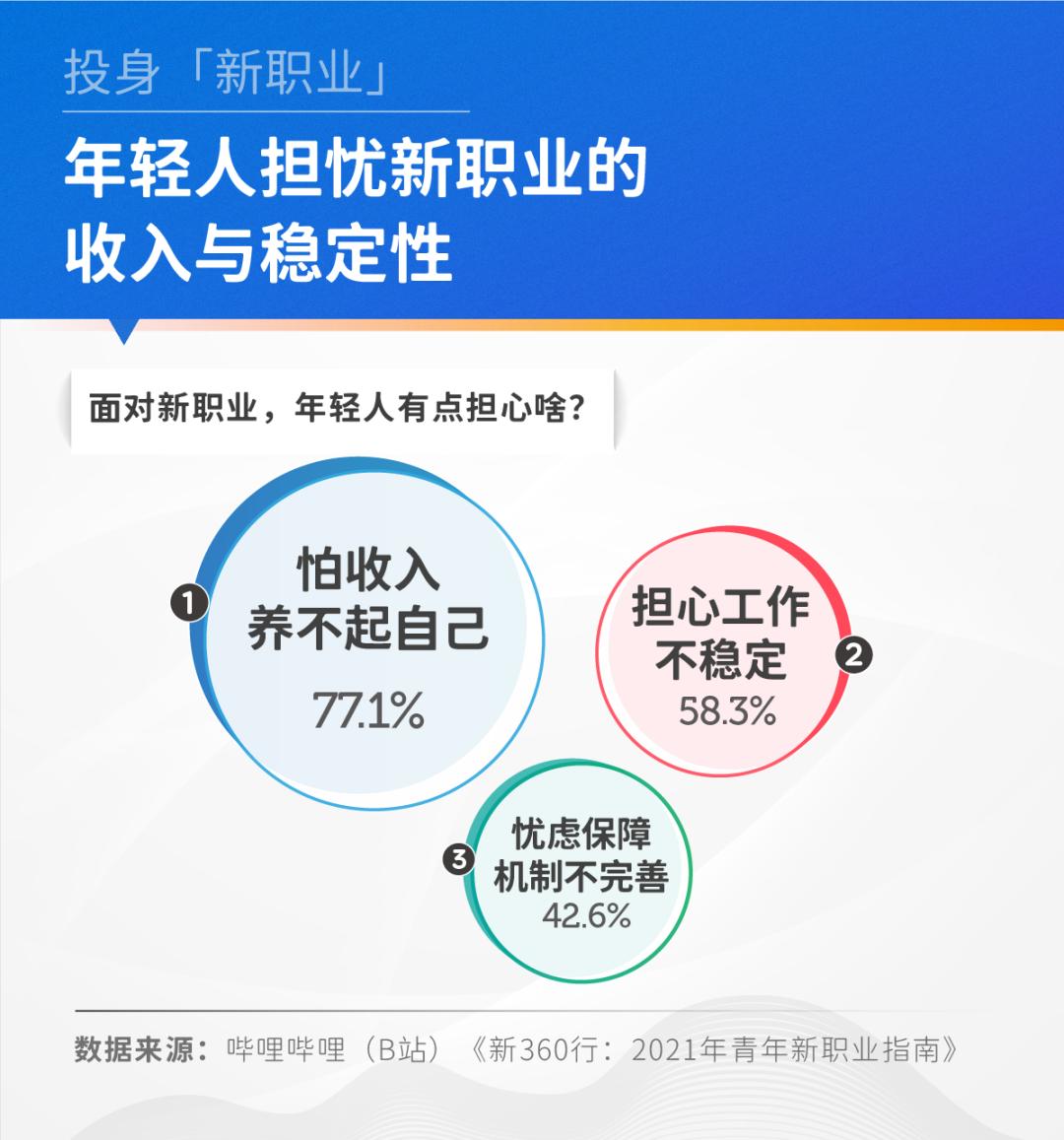 《新360行:2021年青年新职业指南》显示,当年轻人面对“新职业”,他们更担心收入的不足与职业的不稳定性,这可能源于新职业保障机制的不完善。