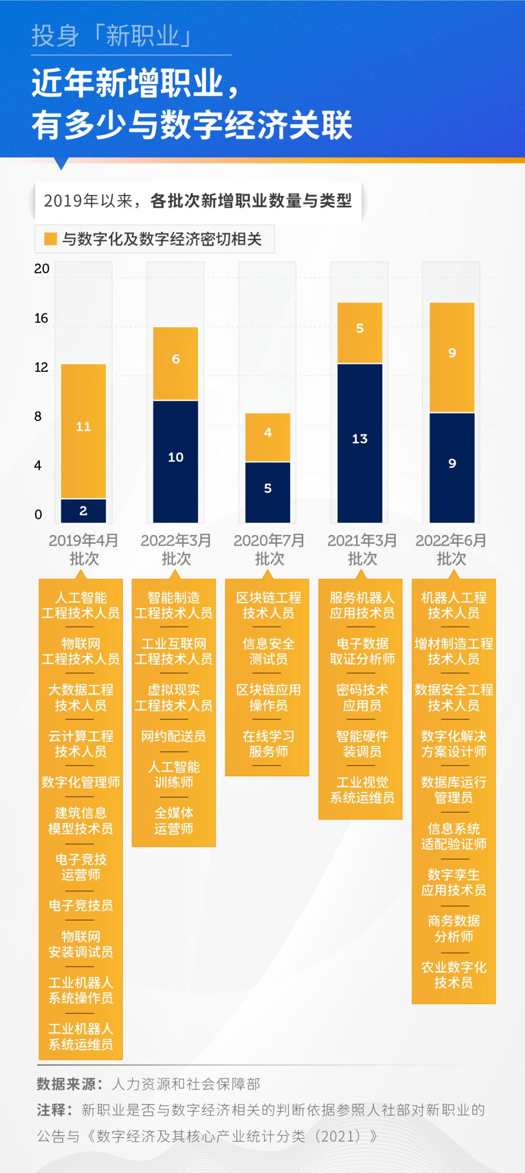 分别为:机器人工程技术人员、增材制造工程技术人员、数据安全工程技术人员、数字化解决方案设计师、数据库运行管理员、信息系统适配验证师、数字孪生应用技术员、商务数据分析师、农业数字化技术员。这意味着,今年新增的半数职业,都扎根在数字经济环境里。