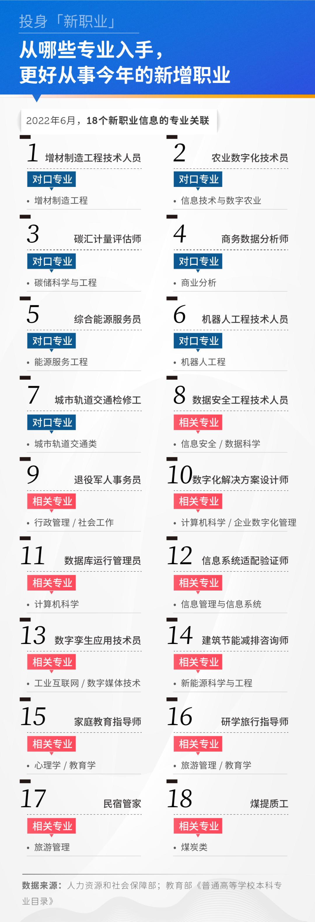更多职业,暂时没有对口,而仅属于此前专业的发展分支,以响应某种横向拓展的社会需求。例如,今年新增的退役军人事务员,可以由行政管理、社会工作等专业的同学从事。但事实上,它并没有专业门槛要求。