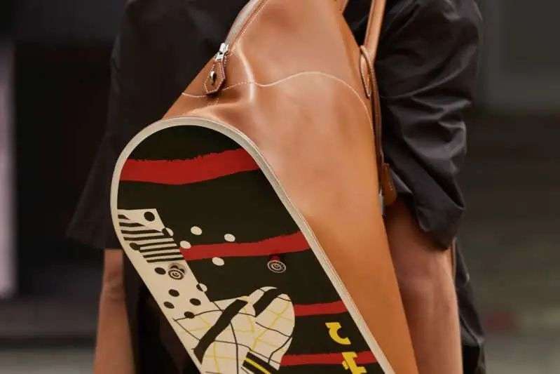 滑板有了,滑板包也没缺席。爱马仕的 Bolide 系列提包底部看上去是一整块滑板,让你背着包都能感受到户外运动的美好。