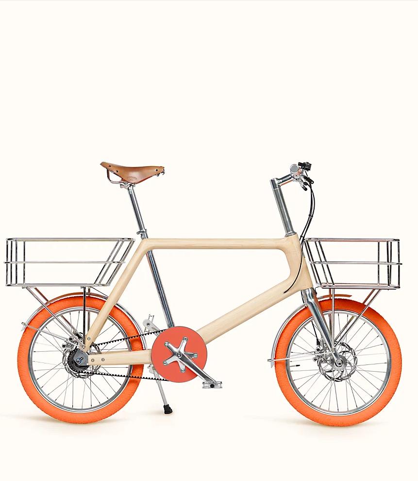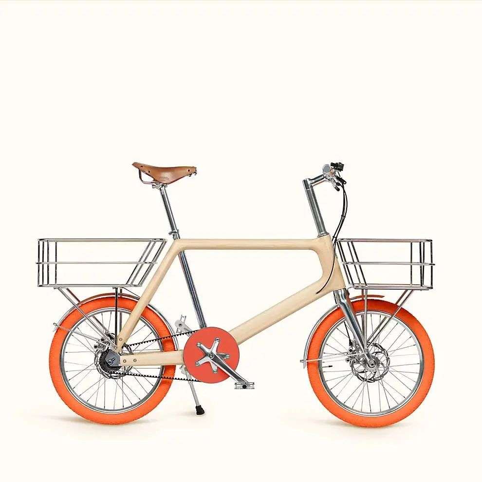 此外,白蜡木、铝也是自行车的重要材料,把手及座垫支架处配有车灯,内置车灯还可以调整。自行车前侧饰有系列标识上釉徽章,座位可以调节不同高度以适应不同身高的用户。自行车不够的话,爱马仕也贴心打造了电动车款以供选择。