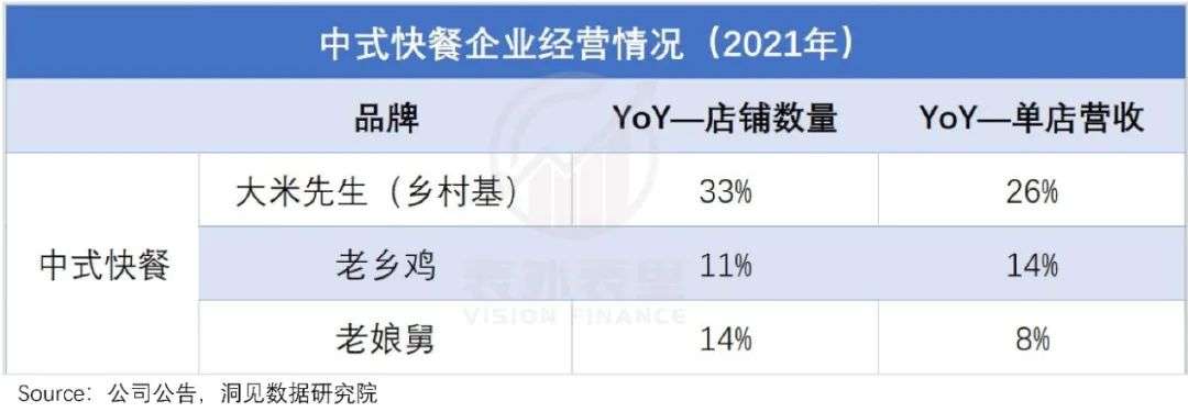 如下图,伴随着扩张,大米先生单店营收增长26%;老乡鸡同比增长14.3%;老娘舅同比增长8%。