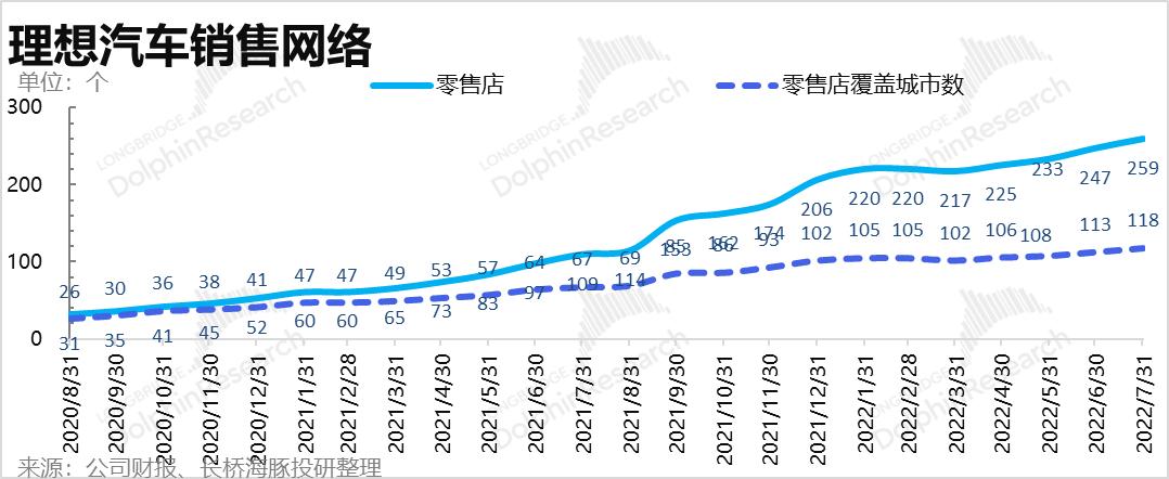 截止2022年7月底,公司拥有个259家零售店,覆盖118个城市。上半年由于一季度过年开店一贯比较慢,而二季度疫情开店并未大幅跑起来,到7月底结束的新增开店情况距离2022年目标400家还有不小距离。
