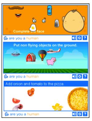 此外,还有类似游戏的验证码,要求用户将物体旋转到特定角度,或将拼图移动到适当的位置。