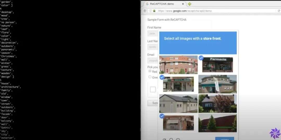 进步的不止 Google。2017 年,开发人员 Francis Kim 进行了一项实验,用 40 行 Javascript构建了一个系统,使用 Google 竞争对手 Clarifai 的图像识别 API,尝试通过 reCAPTCHA 的图像验证码。结果,这个脚本成功找出了图中的商店。