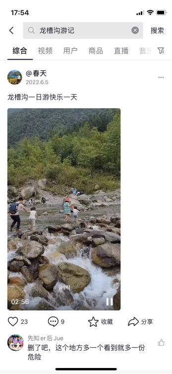 抖音平台仍可搜到“龙漕沟游记”