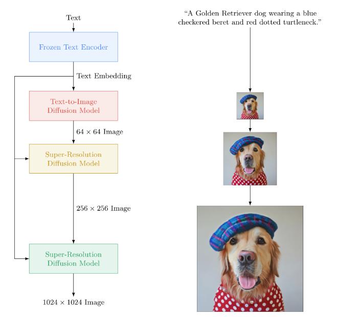 ——当然,究竟是 DALL·E 2 和 Imagen 谁的生成结果更好,还是一个很主观的,见仁见智的事情。在技术实现上,这两家其实大同小异,都是用了 Diffusion(扩散)模型生成,然后再用 Super-Resolution(超分辨率) 技术来让生成结果更加清晰。