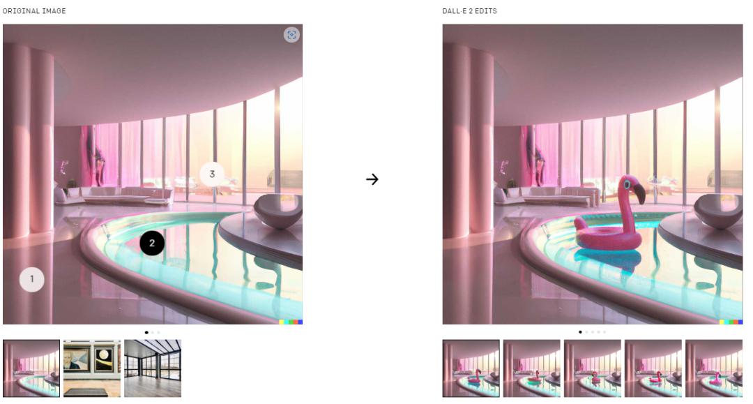 图示:在照片的不同位置添加“火烈鸟”。图片来 源:OpenAI