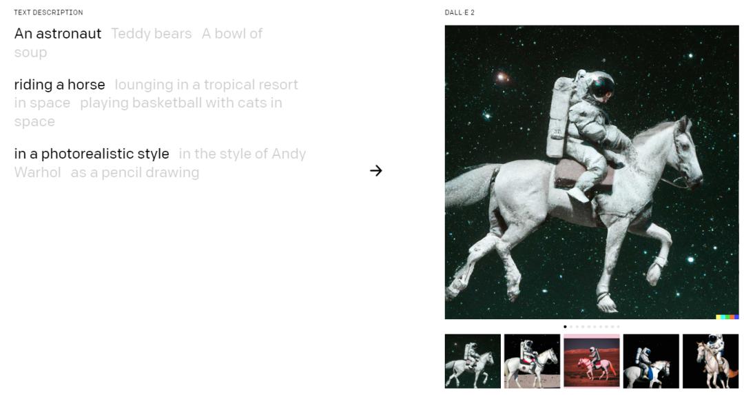 在这些模型当中,OpenAI 的 DALL·E 是最著名的一款。该模型一代于2021年推出,今年刚刚更新到了二代。用户只需提供自然语言描述,模型就能够生成非常写实 (photorealisitic) 的图片。