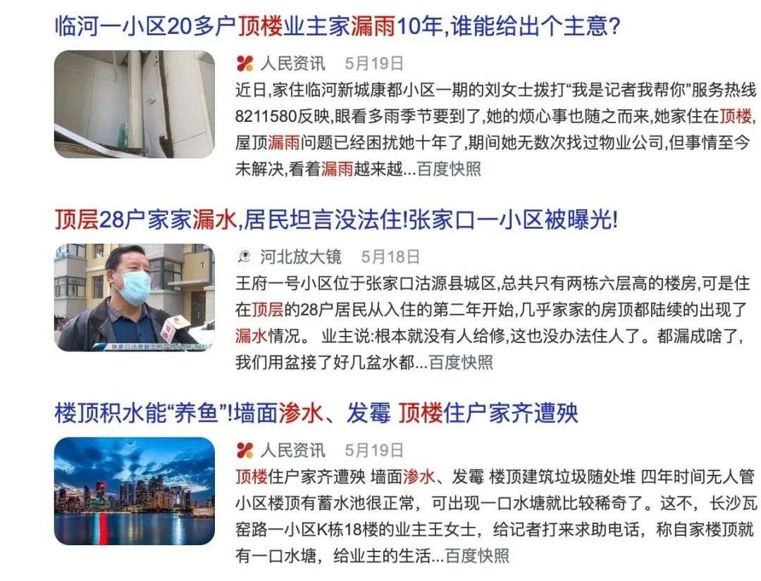 然而,但凡上网搜索一下“顶楼漏水”,就能看到各地关于顶楼漏水的新闻 。
