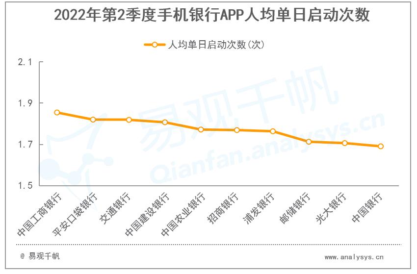 2022年第二季度手机银行活跃用户环比增长2.17%