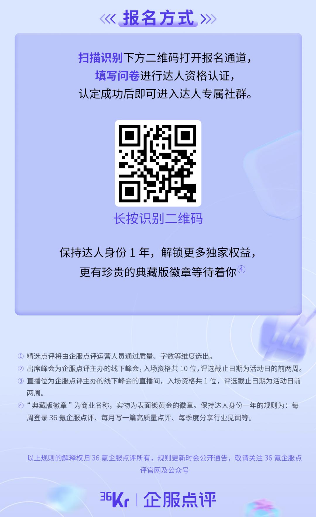 为了更进一步提升点评质量和权威性,即日起推出了36kr企服点评“金牌点评人”招募计划!
