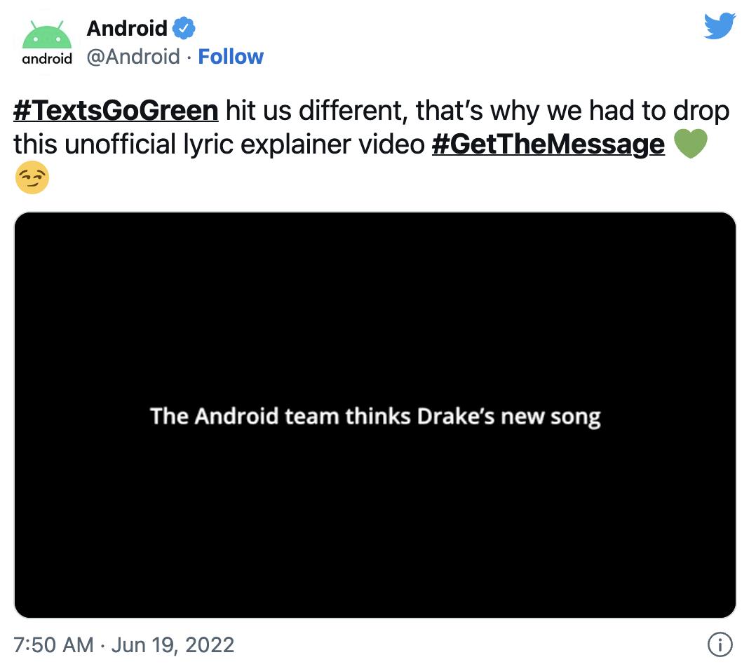 安卓官方账号在社交媒体上“分享”了这首歌丨@Android/Twitter