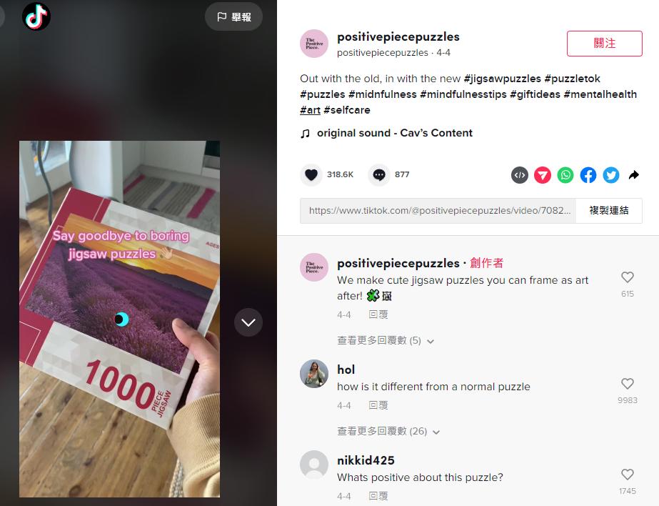例如,看看下面positivepiecepuzzles的视频,它在#selfcare标签中疯传。视频的描述为视频提供了背景,而标题则是一个自然的“钩子”。